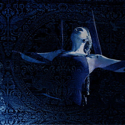 Floating weightless on a pair of silk sheets suspended from the ceiling.
